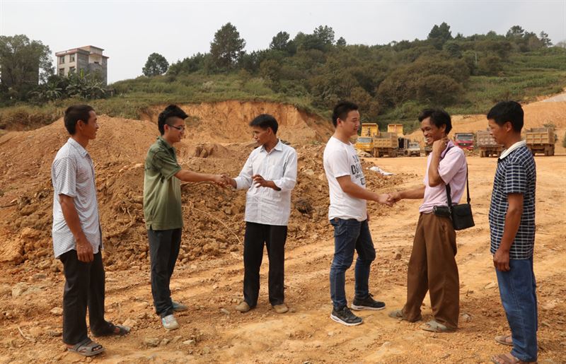 2015年12月11日,天剛剛下過細(xì)雨,寒氣逼人,廣西河池至百色高速公路附近的一處建設(shè)工地正在進(jìn)行緊張的施工。工地勾機(jī)操作員按照設(shè)計(jì),很快就在路基上挖好了3個4米深的基坑。阮渺濤和黃濤是工地的技術(shù)員,身材輕巧的他們帶著設(shè)備,順著勾機(jī)臂爬進(jìn)基坑進(jìn)行抗壓力測驗(yàn)。