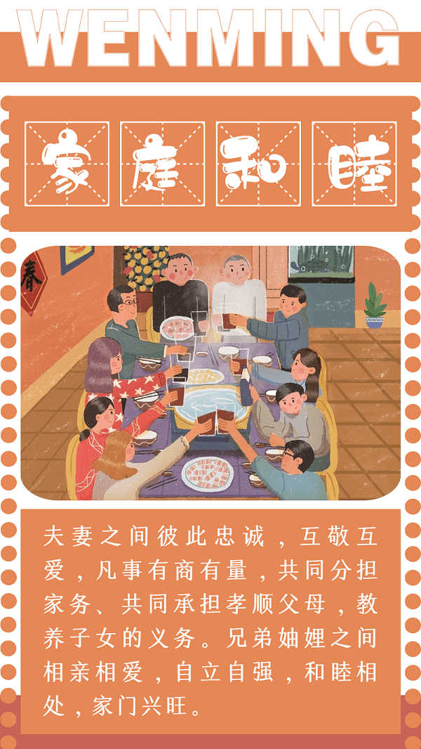 家庭和睦則社會(huì)安定, 家庭幸福則社會(huì)祥和, 家庭文明則社會(huì)文明。 讓我們共同努力,重視家庭文明建設(shè), 為祖國(guó)富強(qiáng)、為社會(huì)發(fā)展貢獻(xiàn)力量。