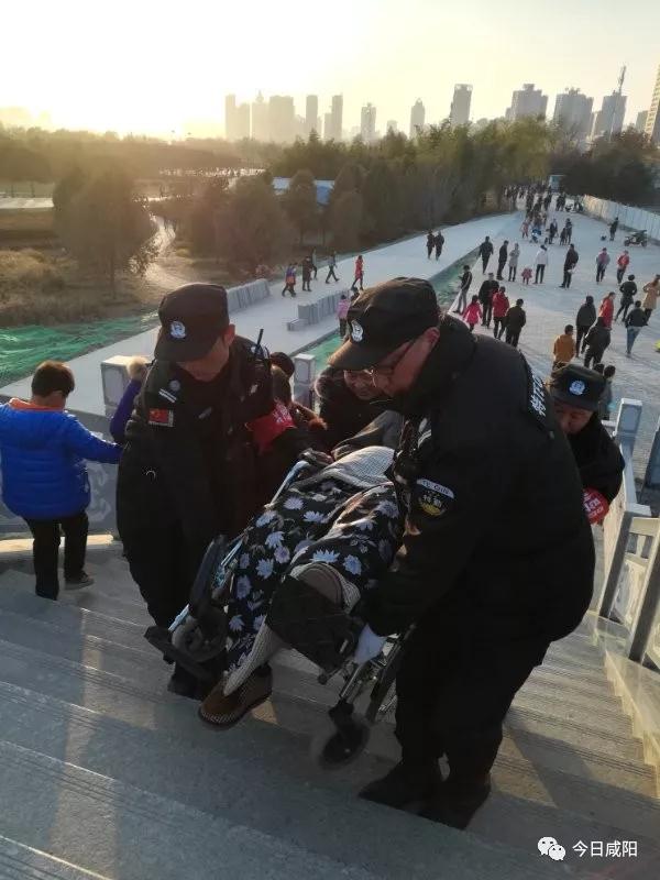12月10日上午10時(shí)許,年逾90的老人只有一人陪同想上廊橋參觀,幾位安保人員一起將老人連帶輪椅一同抬上廊橋,待老人參觀完后又把老人抬下去,實(shí)現(xiàn)了一段被樓梯阻隔的夢想,說不出話的老人感動(dòng)得淚流滿面。