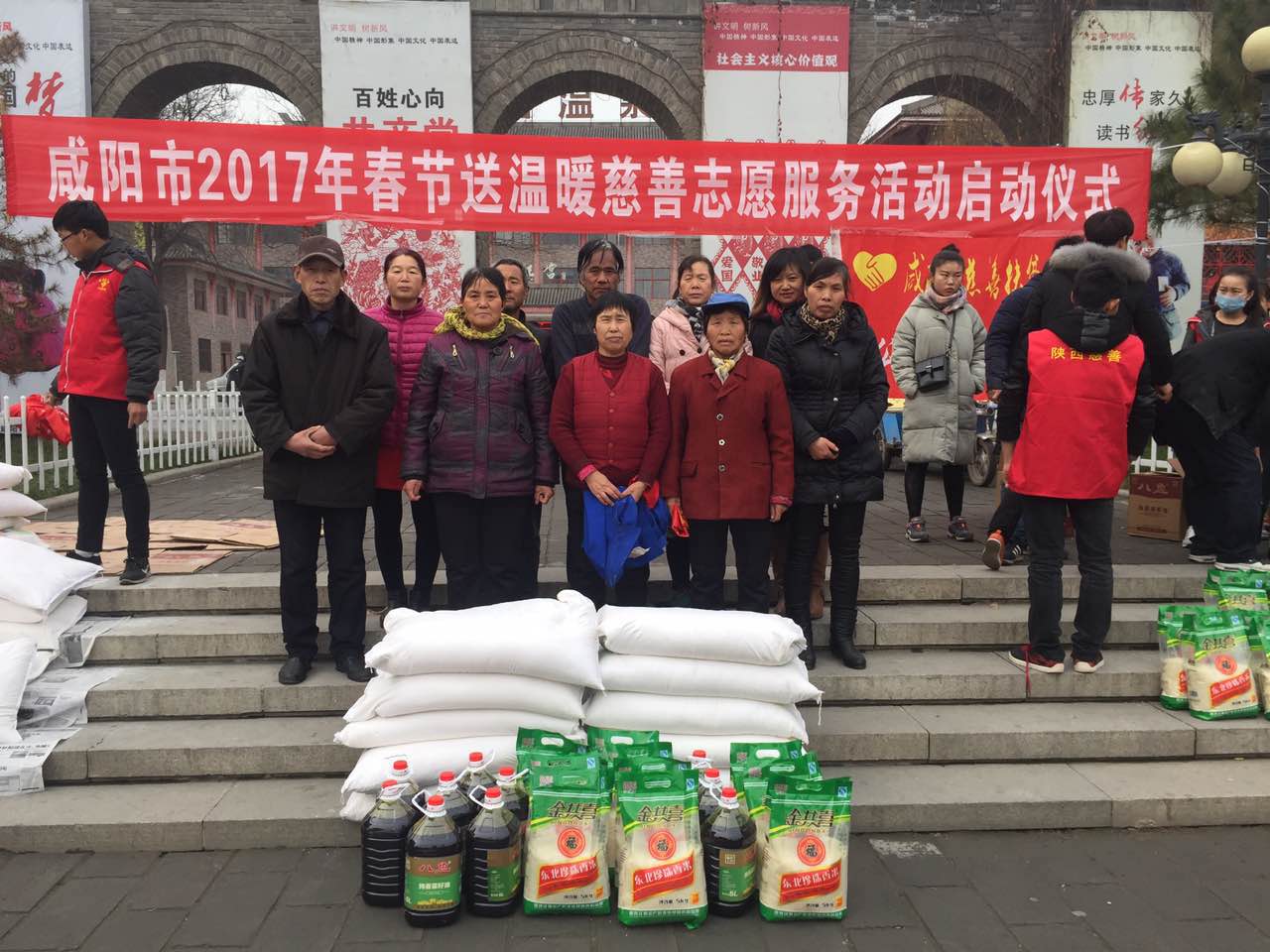 傳遞愛心,不忘初心,新春伊始,天氣愈加寒冷,而廣場上氣氛卻溫暖如春。近日,由咸陽市慈善扶貧協(xié)會主辦的咸陽市2017年春節(jié)送溫暖慈善志愿者服務(wù)活動啟動儀式在中華廣場舉行。為我市70余戶困難家庭送去溫暖,讓他們過一個快樂祥和的春節(jié)。