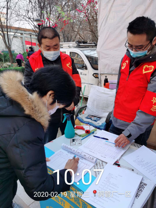 2月19日,停車公司組織16名志愿者,分兩組前往物業(yè)公司管轄的鋼管廠小區(qū)開展疫情防控志愿服務(wù)活動。
