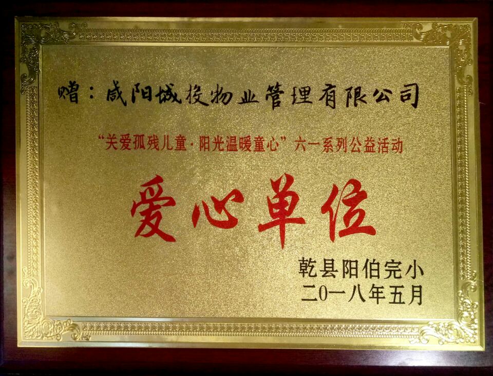 2018年5月榮獲“愛心單位”榮譽(yù)